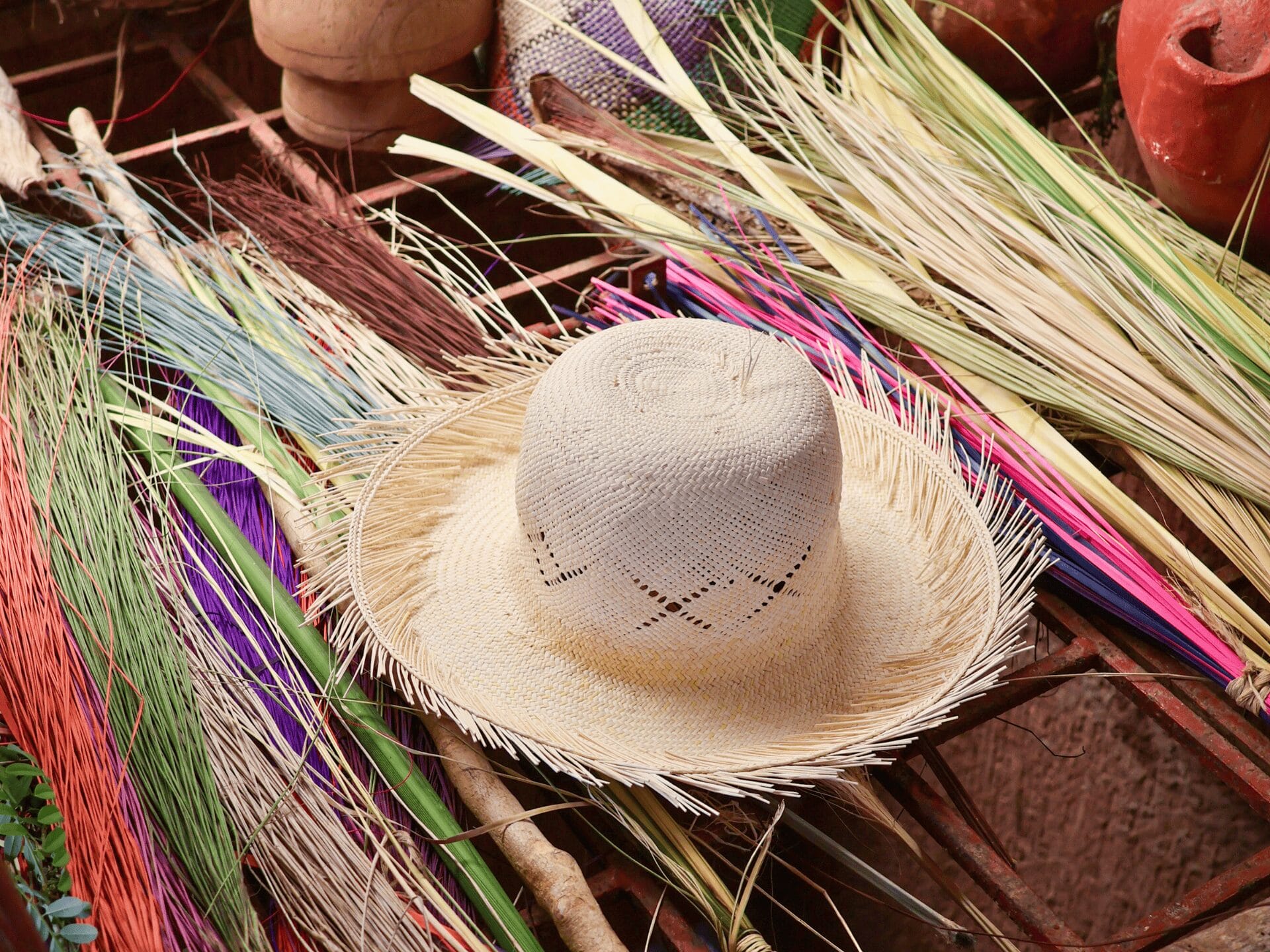 Bereits als Mädchen lernte Doña Chari das aufwändige Kunsthandwerk des Hutflechtens. Um sie bei ihrer Arbeit zu beobachten, steigen wir hinab in die Kellerhöhle. Flink und in atemberaubendem Tempo flicht sie die delikaten Palmfasern; die Hutform ihres Werkstücks ist bereits klar erkennbar. Damit das Naturprodukt gut biegbar und geschmeidig bleibt, ist eine konstante Luftfeuchtigkeit nötig, so wie sie in der Höhle herrscht. Hier kann der Hut auch gefaltet und wieder in Form gebracht werden – in trockenem Klima würden die Palmfasern brechen.